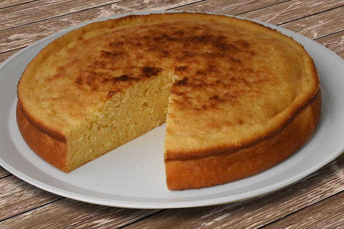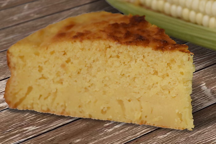 Tradicional pan de elote elaborado con leche condensada, sin harina.