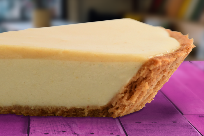 Suave y cremoso relleno de guayaba natural y queso, sobre una base de galleta, con almendra y nuez tostadas.
